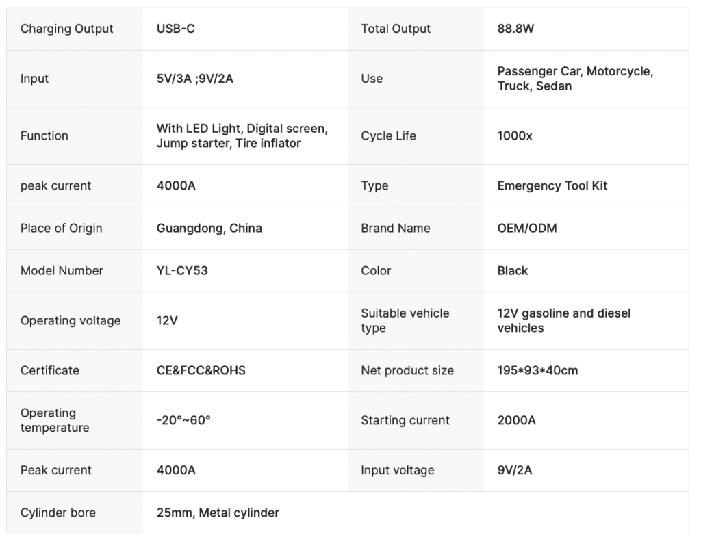 Home Car Accessories 24000mAH 4000A High Power Car Jump Starter Power Bank Battery Booster With Jump Starter with Air Compressor and Power Bank 🔍 24000mAH 4000A High Power Car Jump Starter Power Bank Battery Booster With Jump Starter with Air Compressor and Power Bank WhatsApp Product description Request a Quote Category: Car Accessories Tag: Car Jump Starter Related products Comfortable PVC Waterproof Car Seat Cover Car AccessoriesRead more WhatsApp Universal Car Seat Cover Waterproof Car AccessoriesRead more WhatsApp 9-Seat for Car Interior Accessories Customized Car Seat Cover Car AccessoriesRead more WhatsApp 3 Layer Nonwoven Waterproof UV Protection Car Body Cover for Universal Car Car AccessoriesRead more WhatsApp