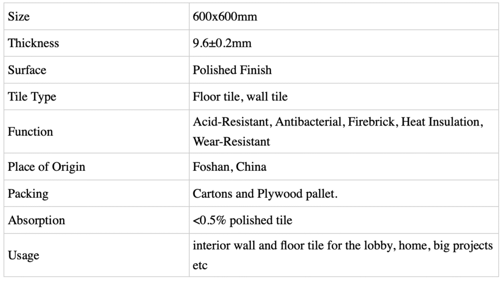 Home Ceramic Products 600X600mm Porcelain Ceramic Marble Tiles 🔍 600X600mm Porcelain Ceramic Marble Tiles WhatsApp us Product Description Request a Quote Category: Ceramic Products Tag: Ceramic Description Related products Indian Anti Water Grey Glazed Porcelain Ceramic Floor Tiles 600X1200 Ceramic ProductsRead more WhatsApp us High Quality Porcelain Flooring Virified Living Room Moroccan Tiles UK Ceramic ProductsRead more WhatsApp us Porcelanato Motif Ceramic Tiles Granite Porcelain Floor 600X1200 Hotel Lobby Decoration Porcelain Tile Ceramic ProductsRead more WhatsApp us Grade AAA Porcelain Porcelanato 60X60 Floor Tiles Polish Ceramic ProductsRead more WhatsApp us
