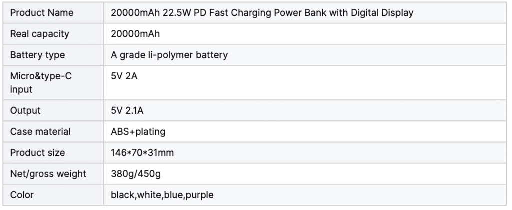 Home Electronics Products Custom Logo Digital Display Micro Type-C Input Two USB-A Output Powerbank 20000mah With 4 Cables Power Bank 🔍 Custom Logo Digital Display Micro Type-C Input Two USB-A Output Powerbank 20000mah With 4 Cables Power Bank WhatsApp us Product description Request a Quote Category: Electronics Products Tags: Charger, Power bank Related products American Design New 16+14 Inch Dual Touch Screen Laptop I7-9750H 2TB SSD Light Office Laptop Electronics ProductsRead more WhatsApp us 025 New Arrival Touch Screen Gamer Computer Intel Celeron N95 Gaming PC Handheld Game Console With Detachable Game Controllers Electronics ProductsRead more WhatsApp us HOOMC Wireless Mirror Screen Plug-and-Play Mirrorcast for IPhone/Android/Mac OS/Windows Video Splitters Converters AirPlay Wifi Electronics ProductsRead more WhatsApp us High Quality Leather Pen Drive Gift Usb Memory 2.0 3.0 2GB 4GB 8GB 16GB Pendrive 32GB 64GB 128GB Usb Flash Drive Electronics ProductsRead more WhatsApp us