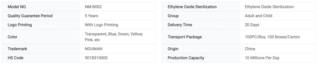 5 Size distinguished by the needle-hub’s color codes and Specifications