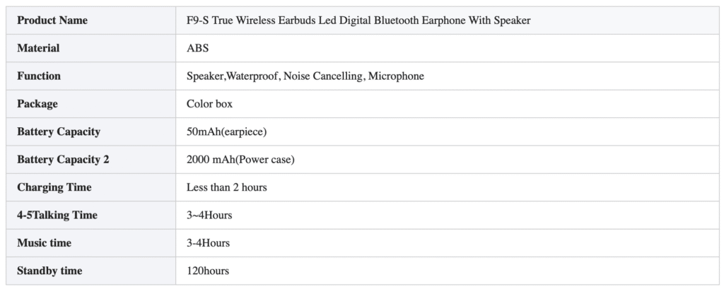 Home Electronics Products F9 Headset Earphone LED Mini F9-5 Bt Earbuds 5.0 Wireless Tws in-Ear Headphones 🔍 F9 Headset Earphone LED Mini F9-5 Bt Earbuds 5.0 Wireless Tws in-Ear Headphones WhatsApp us Product description Request a Quote Category: Electronics Products Tags: Earbuds, Earphone Description Related products 15W Fast Charging 3-in-1 Foldable Wireless Dock Stand Desktop Charging Station for Phone Use Electronics ProductsRead more WhatsApp us TYPE-C 360 Degree Rotation Aluminum Car Charger 15W Air Vent Wireless Car Holder for Mobile Phone Electronics ProductsRead more WhatsApp us Usb Stick 2.0 3.0 2GB 4GB 8GB Metal Pen Drive 16GB 32GB 64GB Pendrive 128GB Electronics ProductsRead more WhatsApp us Custom Logo Wooden Wood Gift 2.0 3.0 Type C Usb Flash Drive 4GB 8GB 16GB 32GB 64GB 128GB Pen Drive Memory Stick Pendrive Electronics ProductsRead more WhatsApp us