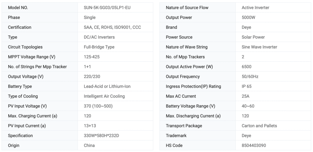 Home Solar & Renewable Energy Hybrid Inverter Single Phase Sun-5K-Sg03lp1-EU 5kw Inverter 🔍 Hybrid Inverter Single Phase Sun-5K-Sg03lp1-EU 5kw Inverter WhatsApp us Product Parameters Request a Quote Category: Solar & Renewable Energy Tag: solar panel You may also like… 16kw Single Phase Inverter Hybrid Solar System DC Inverter Solar & Renewable EnergyRead more WhatsApp us Hybrid Solar Inverter Three Phase 8kw 10kw 12kw on and off Grid Inverter Solar & Renewable EnergyRead more WhatsApp us Related products 445W Full Black Solar Panel Black Frame Solar Modules for on Grid Solar System Solar & Renewable EnergyRead more WhatsApp us 12V 100ah 200ah Gel Lead Acid Battery for Solar System Solar & Renewable EnergyRead more WhatsApp us Monocrystalline Jinko Panel Photovoltaic Module N Type Solar Panels Solar & Renewable EnergyRead more WhatsApp us 5kwh Power Wall Lithium Battery Wall Mounted Battery Bank Solar & Renewable EnergyRead more WhatsApp us